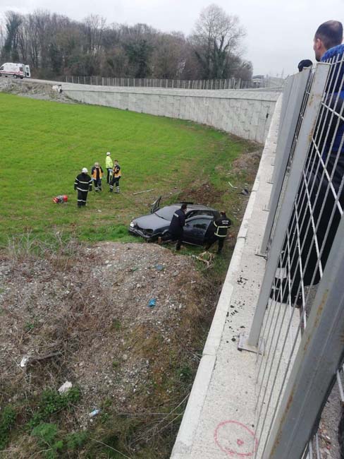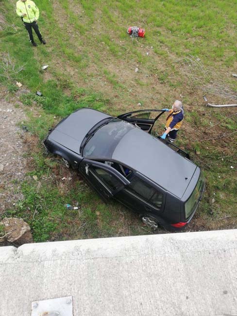 Zonguldak’ta seyir halindeki otomobil sürücüsünün kontrolünü kaybetmesi sonucu üst geçitten aşağı düşerek yaklaşık 50 metre sürüklenerek boş araziye uçtu. Kazada sürücü hayatını kaybetti.