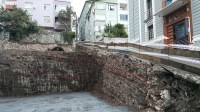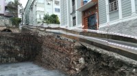 Zonguldak'ın Ereğli ilçesinde Tülin Yence Ertuğrul'un düştüğü inşaat alanı kazadan sonra inşaat çalışanları tarafından tahta bariyer yapılarak kapatıldı.