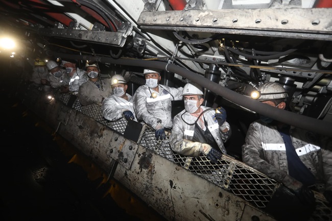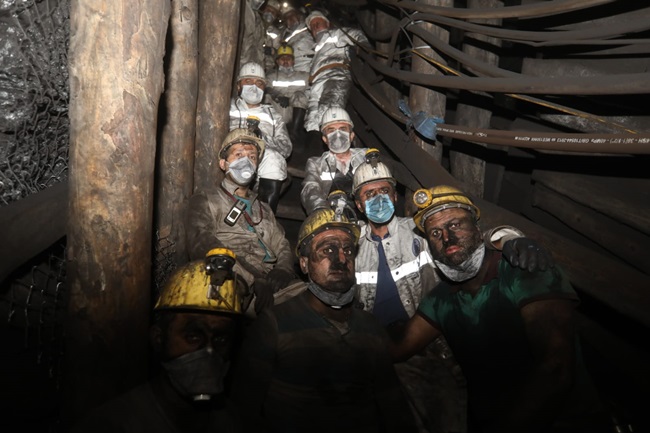 Kurban Kesim töreninin ardından TTK Genel Müdürü Kazım Eroğlu ve GMİS Genel Başkanı Hakan Yeşil birlikte ocağa inerek eksi 360-eksi 460 kodlarında yeni açılan pano ayak üretim ve mekanize ayaklarında incelemelerde bulundular.