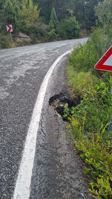 Zonguldak’ın Alaplı ilçesinin İncivez köyü ile Osmanlı Köyü kara yolunun kenarında ortaya çıkan ve yaklaşık 2 metre derinliğe sahip olan çukur, yoldan geçen sürücülerin adeta korkulu rüyası oldu.