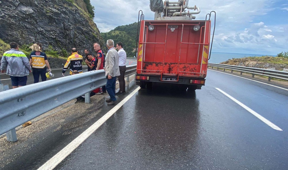 Zonguldak'ta sıkışmalı trafik kazasındaki yaralıya müdahale eden arama kurtarma ekibinin bulunduğu pikap dönüş yolunda kaza yaptı. Kazada üç itfaiye personeli yaralandı.