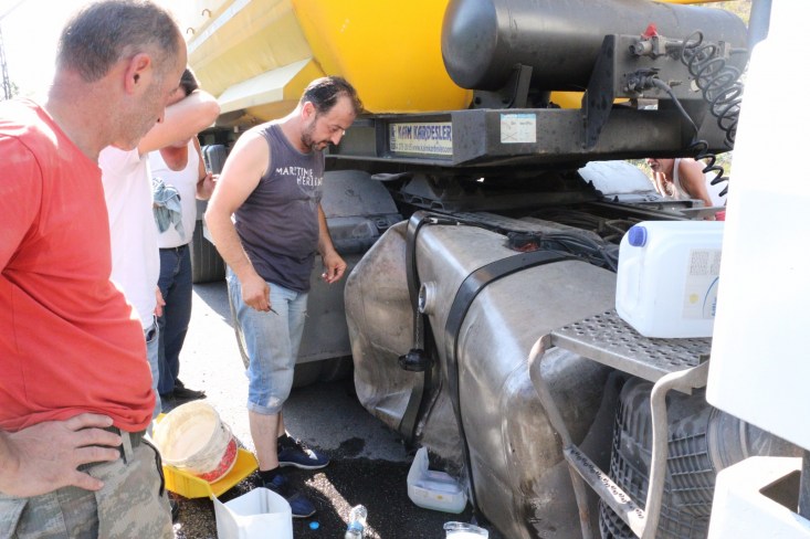 Diğer yandan kaza anını cep telefonu ile kaydeden bir vatandaş kazadan sonra akan mazotunu plastik şişelere doldurmaya çalışan TIR sürücüsüne tepki gösterdi. Görüntüyü kaydeden vatandaş "Kazada depo delindi. Şoför o telaşla bile hala şu 5 kiloluk su bidonuna yakıt doldurayım diye düşünüyor. Düşünün yani 300-400 kiloluk mudur bir TIR'ın deposu. Su bidonuna alayım akaryakıt ziyan olmasın derdinde. Daha sonra aklı başına geldi ve yola toprak atmaya başladı. Bizde geçen arabalardan su istedik ve yakıtın üzerine su attık" dedi.