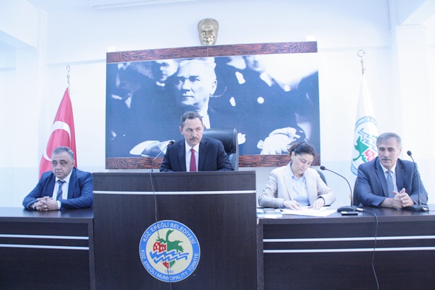 Karadeniz Ereğli Belediye Meclisi'nin Haziran ayı toplantısı Belediye Başkanı Hüseyin Uysal Başkanlığında, Atatürk Kültür Merkezi Belediye Meclis salonunda tek oturum halinde gerçekleştirildi. Toplantıya AK Partili üyelerden Yusuf Kalay, Sezai Meriç, Reşat Latif, İhsan Yazıcıoğlu, Turgay Aydın ve CHP'li üye Nur Oğuz mazeretleri dolayısıyla katılmadı.
