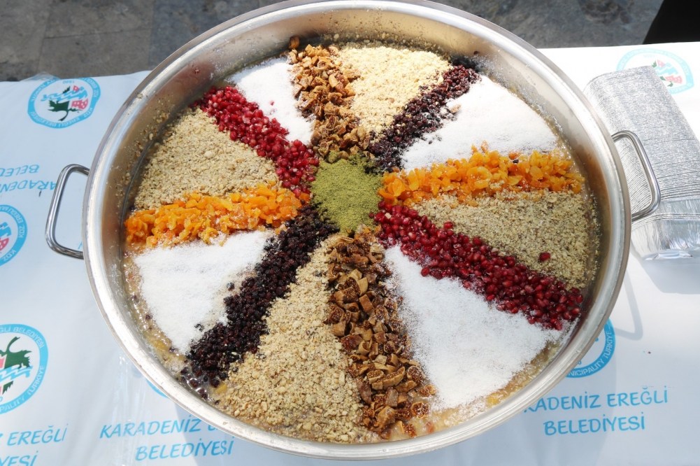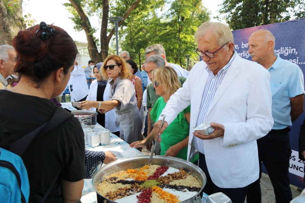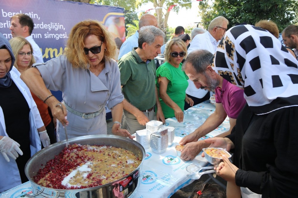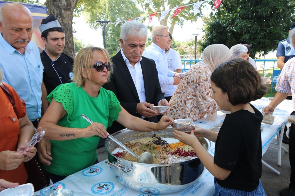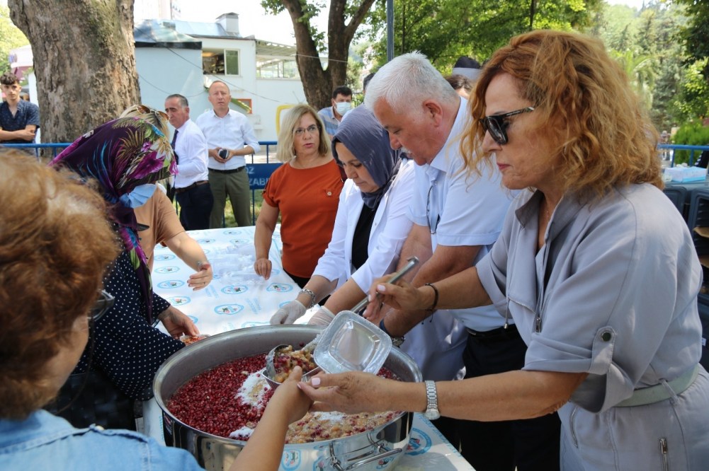 2 Bin kişilik aşure dağıtımına, Kdz. Ereğli Belediye Başkanı Halil Posbıyık eşi Kadın Gücü Koopretifi Başkanı Neriman Posbıyık, Belediye meclis üyeleri, daire müdürleri, mahalle muhtarları, sivil toplum örgütü temsilcileri katıldı.