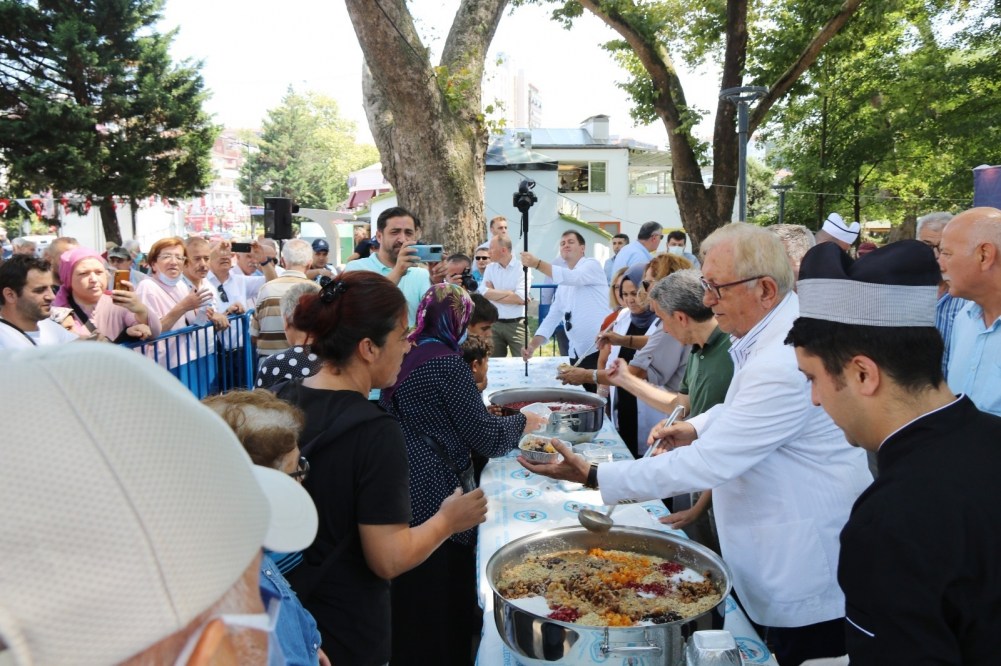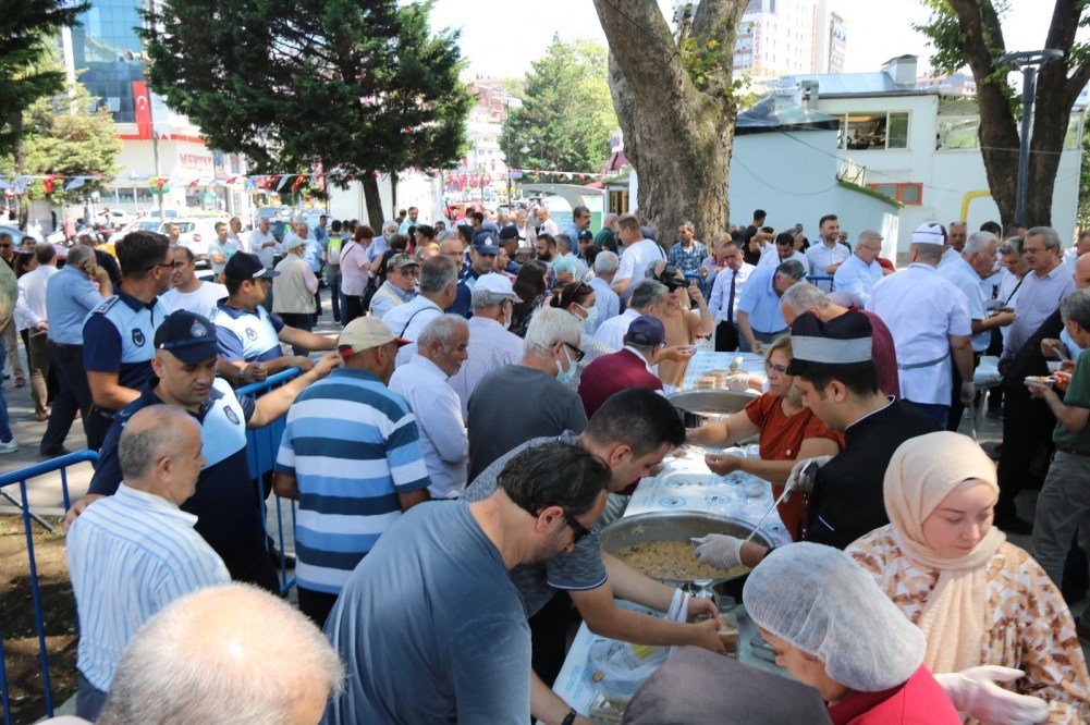 Mezarlıklar Müdürü Dr. Metin Avcı'nın okuduğu duanın ardından Başkan Posbıyık eşi Neriman Posbıyık, Meclis üyeleri ve Başkan Yardımcıları kazanların başına geçerek vatandaşlara aşure dağıttı.