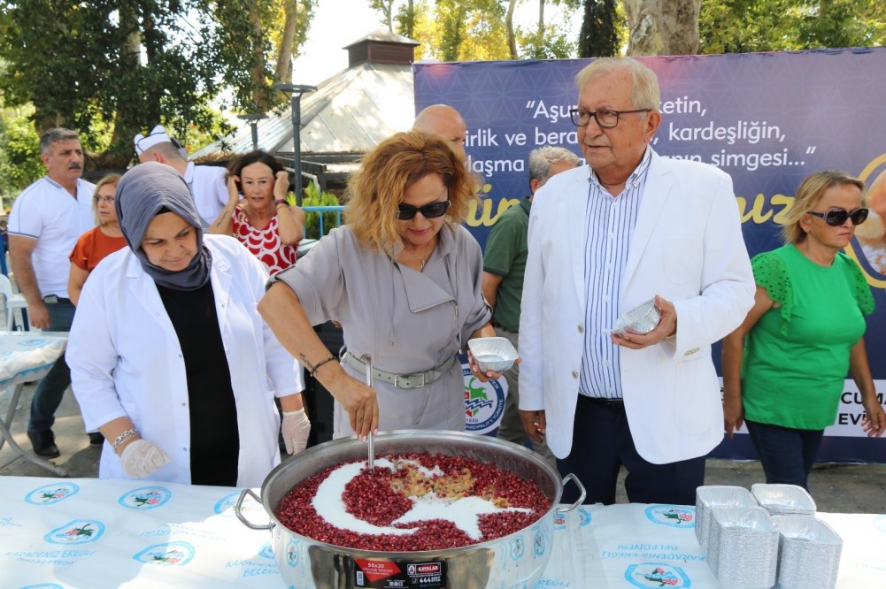 Kdz. Ereğli Belediyesi, geleneksel hale getirdiği aşure dağıtımını bu yıl Muharrem ayında da sürdürdü. Çilekli kadın heykelinin yanında gerçekleştirilen aşure dağıtımında, vatandaşlar birliğin, beraberliğin, kardeşliğin ve paylaşmanın simgesi olan aşureyi paylaştı.