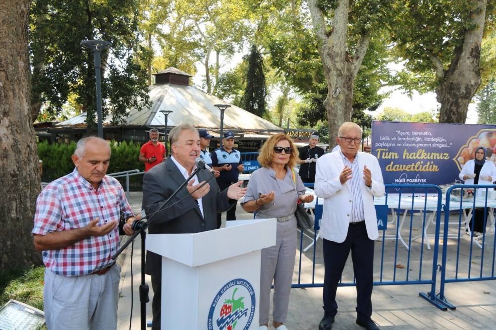 Başkan Posbıyık, konuşmasında “Hepinizi sevgi, barış, dostluk duygularımla selamlıyorum. Aşure günü etkinliğimize hoş geldiniz. Muharrem ayındayız, aşuremizi hazırladık. Bu günler, birlik ve beraberlik günleri… Bu duygularla bir araya gelebilmek önemli. Aşure günümüzün tüm güzelliklerin ve kurtuluşların, tatlı ve mutlu günlerin başlangıcı olmasını, sevgi ve dostluk bağlarımızı geliştirmesini temenni ediyorum. Peygamberimizin torunu Hz. Hüseyin ve ehlibeytinden 72 yoldaşını rahmetle ve saygıyla anıyorum. Ereğli’mize, memleketimize hayırlar ve bereket getirsin. Muharrem ayımız hayırlı uğurlu olsun” dedi.