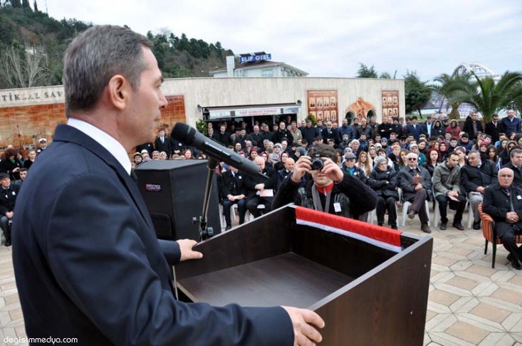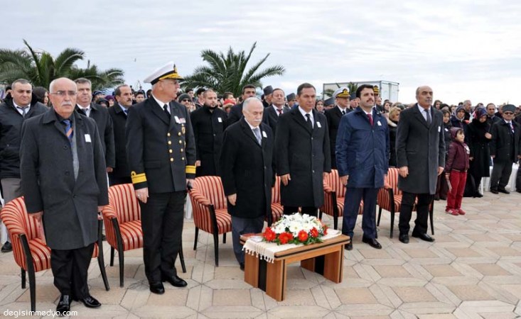 Kdz. Ereğli Kaymakamı İbrahim Çay, Karadeniz Bölge ve Garnizon Komutanı Tuğamiral Hasan Doğan ve Belediye Başkanı Hüseyin Uysal'ın yanı sıra Belediye Başkan Yardımcıları ve belediye Meclis Üyeleri, siyasi partilerin ve sivil toplum örgütlerinin temsilcileri ve çok sayıda vatandaşın katıldığı program, saygı duruşu ve İstiklal Marşı ile başlarken ardından da havaya 3 el saygı ateşi yapıldı ve gemi bordasına hazırlanan Karadeniz Ereğli'nin tüm şehitlerinin yer aldığı panonun açılışı ile devam etti.