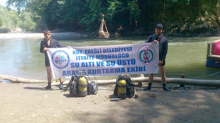 Yaz mevsiminde artan boğulma vakalarına karşın eğitim alan Karadeniz Ereğli Belediyesi İtfaiye Müdürlüğü'ne bağlı dalgıçlar, Düzce'de su altı arama kurtarma çalışmalarına katıldı.
