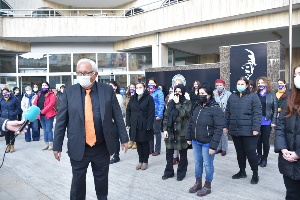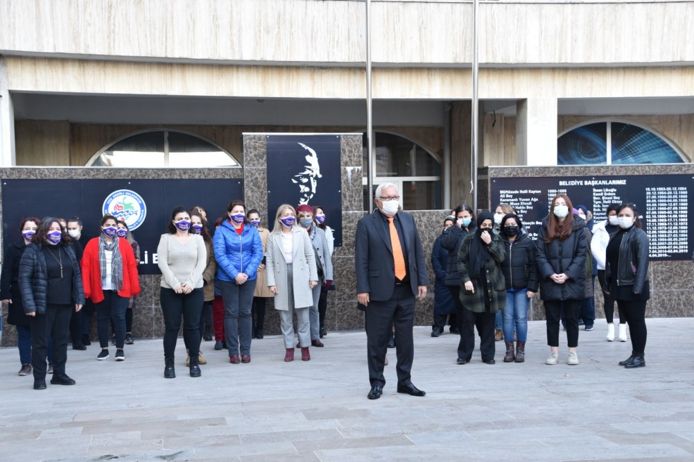 Kdz. Ereğli Belediye Başkanı Halil Posbıyık, 25 Kasım Kadına Yönelik Şiddetle Mücadele Günü’nde belediyede çalışan kadın personelle bir araya gelerek ‘Kadına Şiddete Hayır’ dedi.