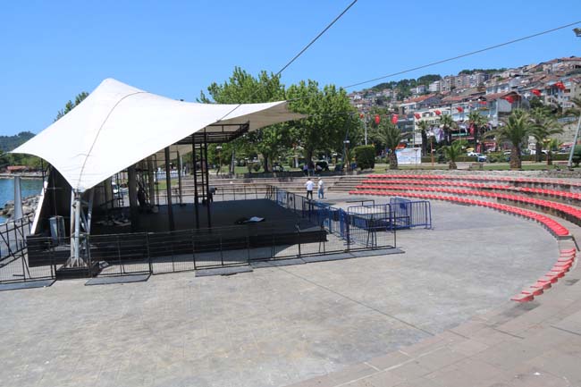 Yerel ve ulusal sanatçıların katılacağı konserler için Kdz. Ereğli Belediyesi Amfi tiyatro’da yaptığı özel hazırlıkları tamamlamak üzere. Oturma alanları yenileniyor, sahne düzenleniyor.
