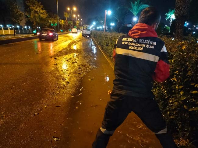 Kdz. Ereğli Belediyesi’ne bağlı Su ve Kanalizasyon İşleri, Fen İşleri, Temizlik İşleri, İtfaiye ve Zabıta ekipleri afet anının ilk dakikalarından itibaren olumsuzluk yaşanan bölgelere müdahale etti.