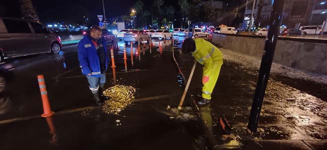 Belediye ekipleri, süratle suyun tasfiyesi için çalıştı. Şehir genelinde yaşanan aksaklıklara müdahale edildi.