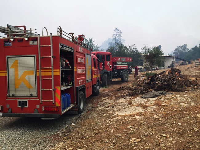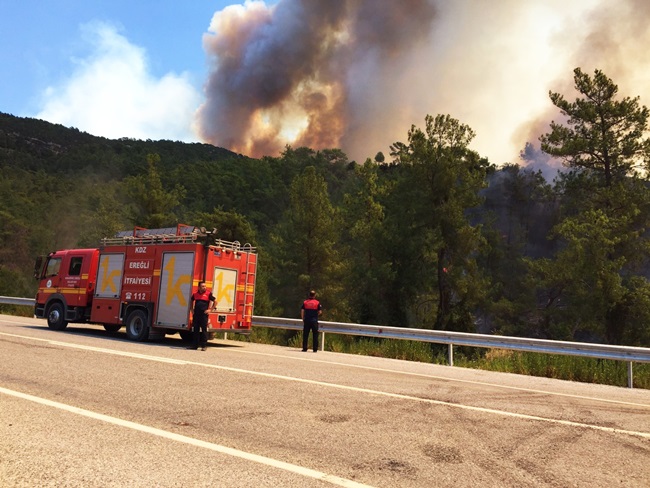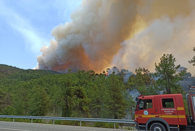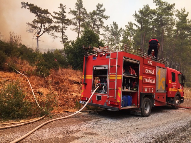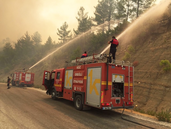 Kdz. Ereğli Belediye Başkanı Halil Posbıyık’ın talimatıyla yangın bölgesine giden İtfaiye ekibi, Manavgat Kızıldağ Bukdere mevkisinde yoğunlaşan yangını Türkiye’nin değişik illerinden gelen ekiplerle kontrol altına almak için canla başla çalışıyor.