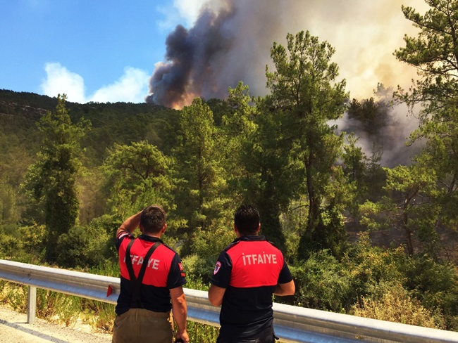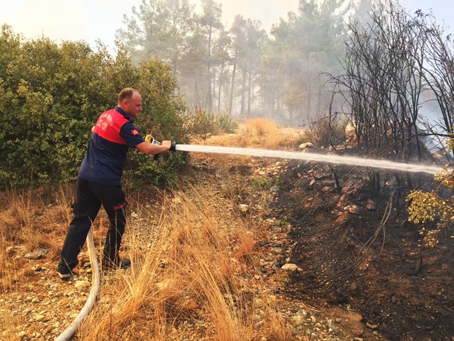 Ateş, “Ekiplerimiz bugün AFAD koordinasyonunda bulundukları bölgeden yangının yoğunlaştığı Kızıldağ Bukdere mevkisine geçtiler. Türkiye’nin değişik illerinden gelen itfaiye ve Orman İşletmesi ekipleriyle birlikte alevleri kontrol altına almak için canla başla mücadele ediyorlar. Allah yardımcıları olsun” dedi.