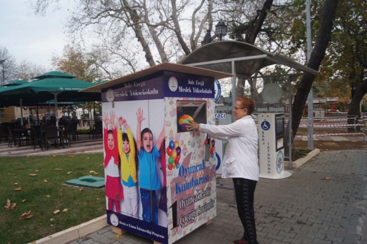 Zonguldak Bülent Ecevit Üniversitesi'ne (BEÜ) bağlı Kdz. Ereğli Meslek Yüksek Okulu, Deniz ve Liman İşletmeciliği Programı son sınıf öğrencilerini Sosyal Sorumluluk Projeleri dersi kapsamında ilçede iki ayrı noktaya oyuncak kumbarası koydu.