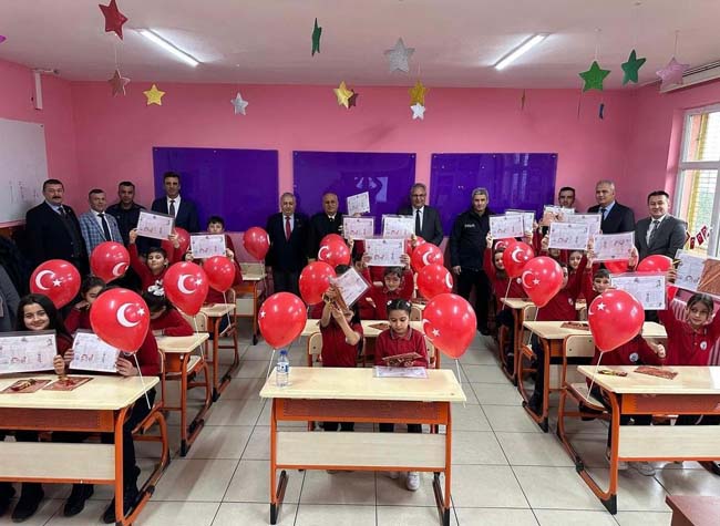 Ayrıca protokol üyeleri, öğrencilere karnelerini takdim ederek onların bu mutlu anına ortak oldular. Karne töreni, öğrenciler ve öğretmenler ile çekilen hatıra fotoğraflarının ardından sona erdi.