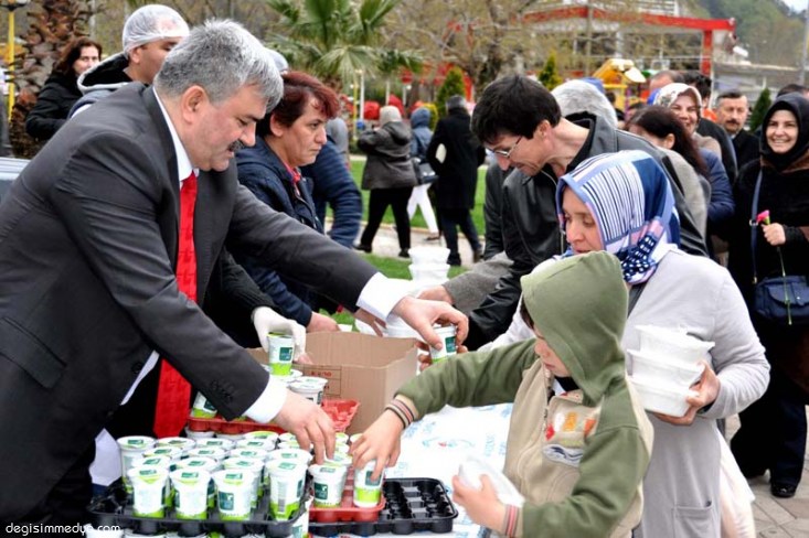 Program sonunda vatandaşlara etli pilav ve ayran ikramı dağıtımına Başkan Uysal ve Milletvekili Adayı Çaturoğlu'da katıldı.