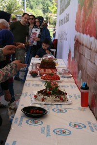 Bunun için yarışmalar düzenliyoruz. Bu yarışmaları şöyle sıralayabiliriz. Bilinç seviyesini arttırmak, üretimi teknik yönden geliştirmek amacıyla üreticiler arası bilgi yarışması düzenliyoruz. Yine Osmanlı çileğinin kullanım alanlarına dikkat çekmek için burada sergileyebileceğimiz şekilde pasta yarışmaları düzenliyoruz. Üçüncüsü de en güzel Osmanlı Çileği yarışması düzenliyoruz. 10 Mayıs'ta üreticiler arası bilgi yarışmasını düzenledik. Bugün en güzel çilekli pasta ve en güzel Osmanlı çileği yarışmasını düzenleyeceğiz.