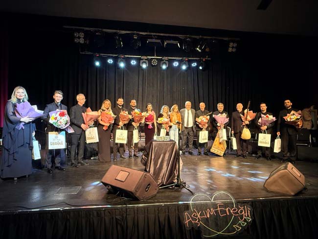 AKM Dündar Güçeri Gösteri Salonu’nda düzenlenen konsere, Kdz. Ereğli Belediye Başkanı Halil Posbıyık, eşi Kadın Gücü Kooperatifi Başkanı Neriman Posbıyık, meclis üyeleri, başkan yardımcıları, daire müdürleri ile vatandaşlar katıldı.