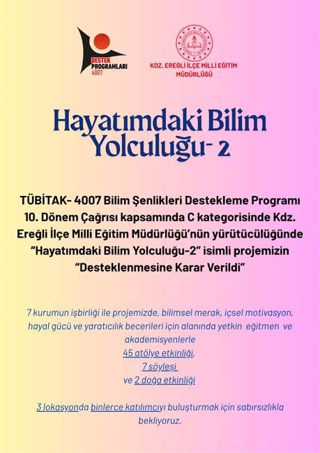 Kdz. Ereğli'de “Hayatımdaki Bilim Yolculuğu-2” Bilim Şenliği Projesi ile heyecan verici bilimsel etkinlikler düzenlenecek.