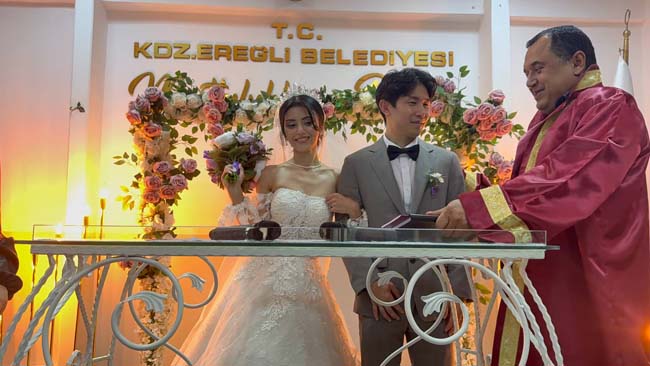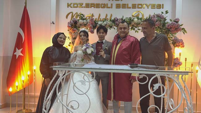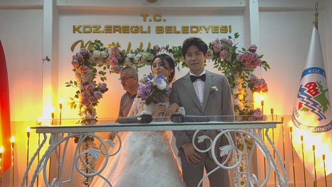 Karadeniz Ereğli ilçesinde yaşayan Tuana Nur Yıldız, eğitim için internetten tanıştığı Kyungsu Kang ile dünya evine girdi.