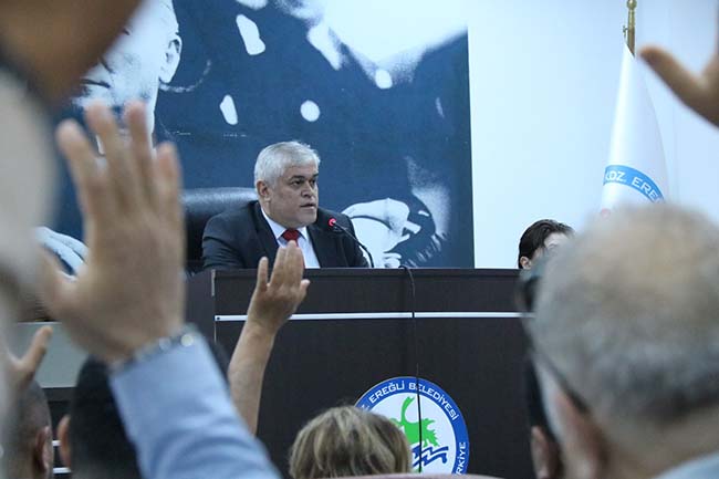 Kdz. Ereğli Belediye Meclisi Eylül ayı olağan toplantısı ilk oturumu AKM Nikah Salonu’nda Belediye Başkanı Halil Posbıyık’ın şehir dışında oluşu nedeniyle Başkanvekili Çetin Yiğit başkanlığında yapıldı.