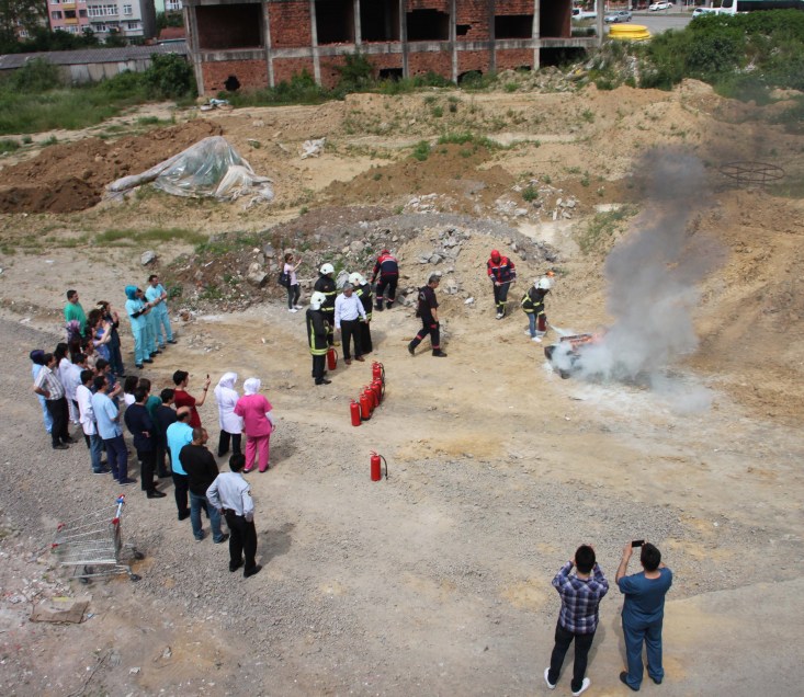 için bir tatbikat düzenlendi. Sağ olsunlar itfaiye müdürümüz bu konuda tam