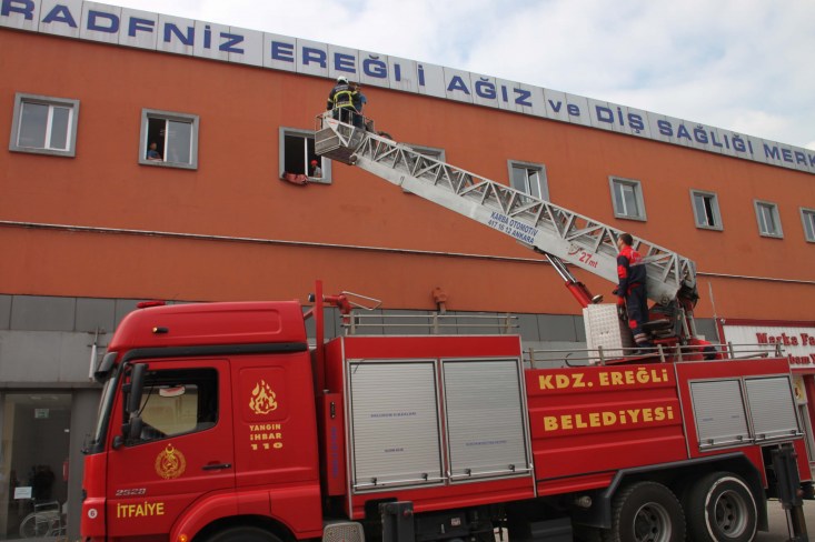 Karadeniz Ereğli'de Ağız ve Diş Sağlığı Merkezi ile Karadeniz Ereğli Belediyesi İtfaiye Müdürlüğü tarafından yangın tatbikatı düzenlendi. Personel, hasta ve belediye çalışanlarından yaklaşık 270 kişinin katıldığı tatbikat başarıyla sonuçlandı.