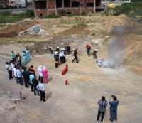 kurtarıldı. Tatbikatın son bölümünde ise ufak çaplı yangınlara yangın tüpü ile