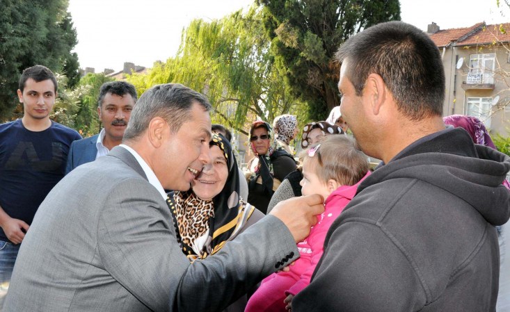 gösterirken, bazı vatandaşlarla da bir süre sohbet etti.