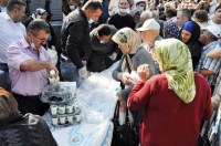 vatandaşlara etli pilav, ayran ve mevlid şekeri ikramında bulundu.