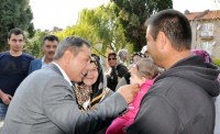 Vatandaşların yoğun ilgisine maruz kalan Başkan Uysal, küçük çocuklara ilgi
