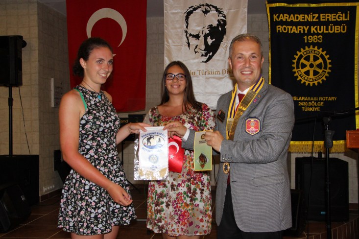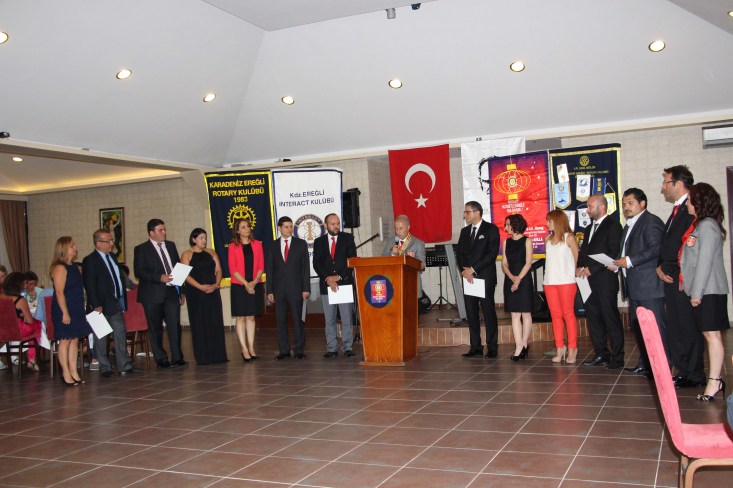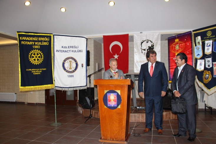 Karadeniz Ereğli Rotary Kulübü iftar programı çerçevesinde; Uluslararası Kısa Dönem Yaz Kampı öğrencileri ile bayrak değişimi yapıldı. Aynı gecede ayrıca Karadeniz Ereğli Rotary Kulübüne üye olan yeni üyeler Aykut Ateş, Doruk Dokuzoğlu, Fuat Çınarer, Hamza Murat Turan, Reha Us, Tamer Akın ve Yılmaz Efe'ye kulüp rozetleri Bölge Guvernör Yardımcıları; M. Kemal Ketrez ( Kulüplerden Sorumlu Guv. Yrd. ), Cengiz Karaca ( Toplantı ve Organizasyonlardan Sorumlu Guv. Yrd. ) ve Teoman Kaynar ( İnsani Hizmet Projelerinden Sorumlu Guv. Yrd.) tarafından takıldı.
