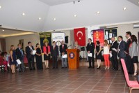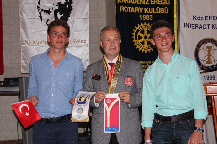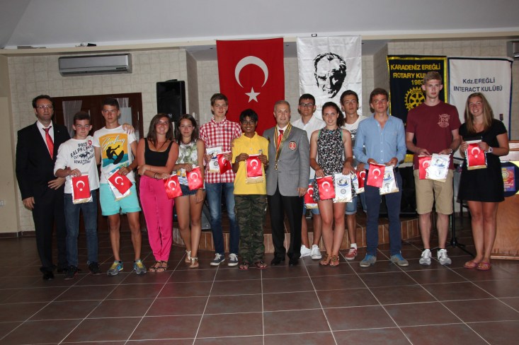 Erdemir Mühendisler Derneğinde düzenlenen programda 12 farklı ülkeden gelen öğrenci konuklar kendilerini gönderen kulübü ve ülkeyi temsil eden bayraklarını Karadeniz Ereğli Kulüp Başkanı Boğaçhan Yıldırım'a verdiler. Yıldırım'da konuk öğrencilere Türk Bayrağı ve Kulüp Bayrağını teslim ederek; "Rotary Kulüp olarak bu proje ile, dünya barışına katkı sağlamayı, karşılıklı kültür değişimini sağlamayı hedeflemektedir. Bizde bu hedef doğrultusunda ülkemizi, ilçemizi ve kulübümüzü en iyi şekilde temsil etmeye çalışıyoruz." dedi.