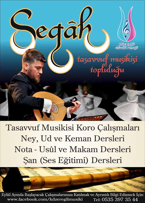 Karadeniz Ereğli Musiki Derneğinde Karadeniz Ereğli için bir ilk oluşturuluyor. Koro Şefliğini Kerem Akbaş'ın yapacağı Tasavvuf Musikisi Korosu "Segâh Tasavvuf Musikisi Topluluğu" olarak Eylül ayında çalışmalara başlayacak.