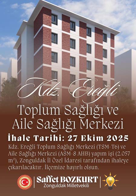 Konu ile ilgili olarak açıklamada bulunan AK Parti Zonguldak Milletvekili Saffet Bozkurt, "Kdz. Ereğli Toplum Sağlığı Merkezi (TSM-T6) ve Aile Sağlığı Merkezi (ASM-8 AHB) yapım işi (2.057 m²), Zonguldak İl Özel İdaresi tarafından 27 Ekim 2025 Pazartesi günü ihaleye çıkarılacaktır. İlçemize hayırlı olsun" ifadelerini kullandı.