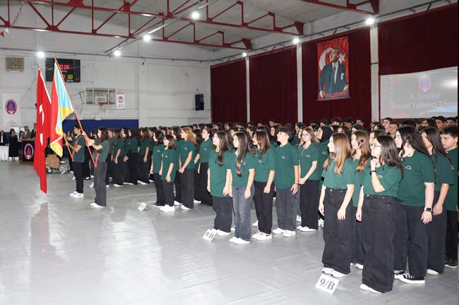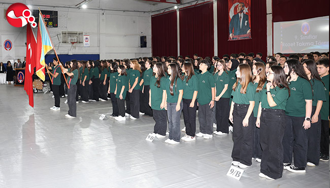 Tören, 9’uncu sınıf öğrencilerinin salondaki yerlerini almasının ardından saygı duruşunda bulunulması ve İstiklal Marşı’nın okunmasıyla başladı. Daha sonra öğrenciler, sözü ve bestesi okulun emekli müzik öğretmeni Gülay Aykan’a ait olan okul marşını hep birlikte seslendirdi.