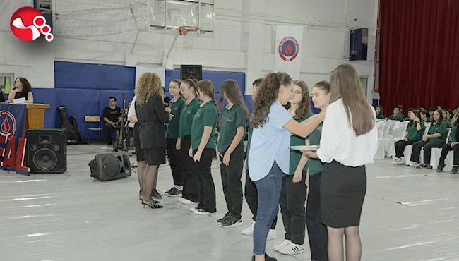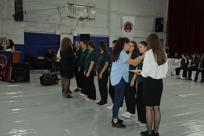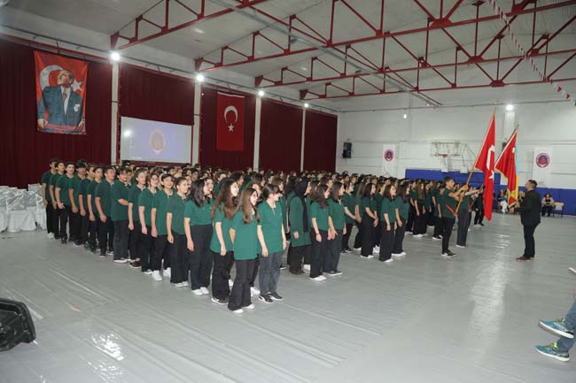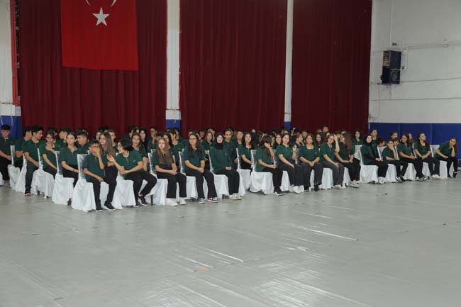 11 Ekim Cuma akşamı okulun spor salonunda düzenlenen tören, 9’uncu sınıf öğrencilerinin salondaki yerlerini almasıyla birlikte saygı duruşunda bulunulması ve İstiklal Marşı’nın okunmasıyla başladı. Öğrenciler, daha sonra hep birlikte okul marşını söyledi.