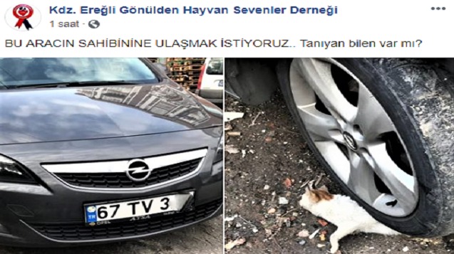 Zonguldak'ın Ereğli ilçesi Gönülden Hayvan Severler Derneği'nin gece saatlerinde yayınladığı paylaşım yürekleri burktu.