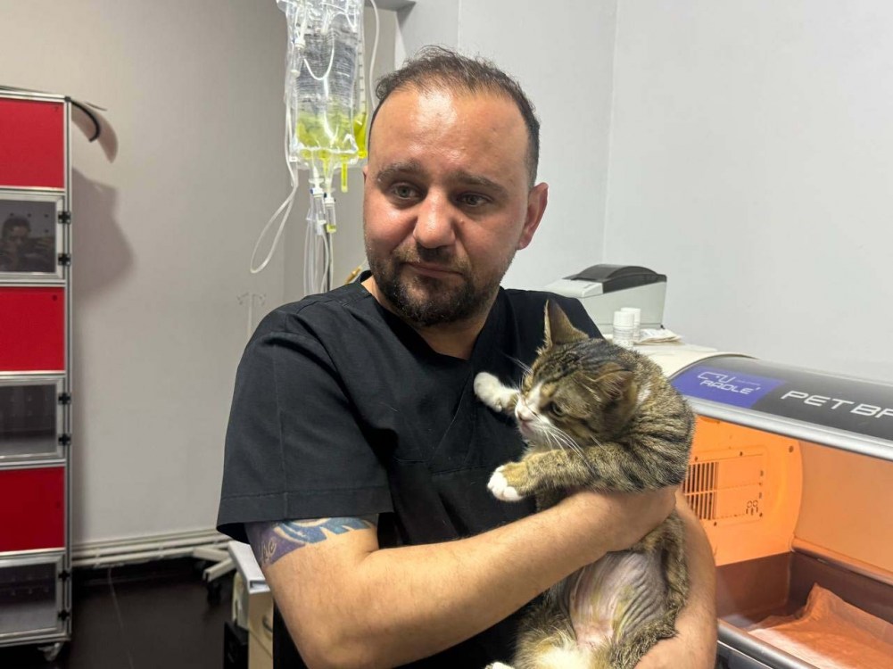 Zonguldak'ta idrarında kan fark edilen ve huzursuzluk belirtileri gösteren kedi ameliyata alındı. Ameliyatla kedinin mesanesinden 2 santimetrelik taş çıkarıldı.