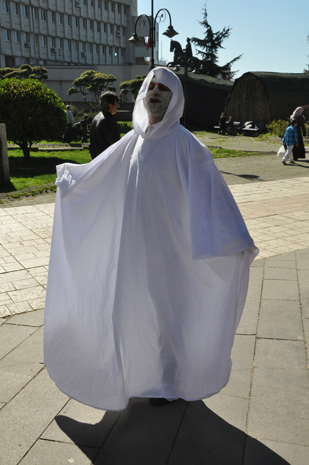 Çatalağzı Belediyesi'nde dört yıl geçici işçi olarak çalıştıktan sonra iş akdi sonlandırılan Zeki Gülser, Gazipaşa Caddesi'nde tek kişilik protesto yaptı. Üzerine kefen giyen Gülser, yüzüne de beyaza boyadı.