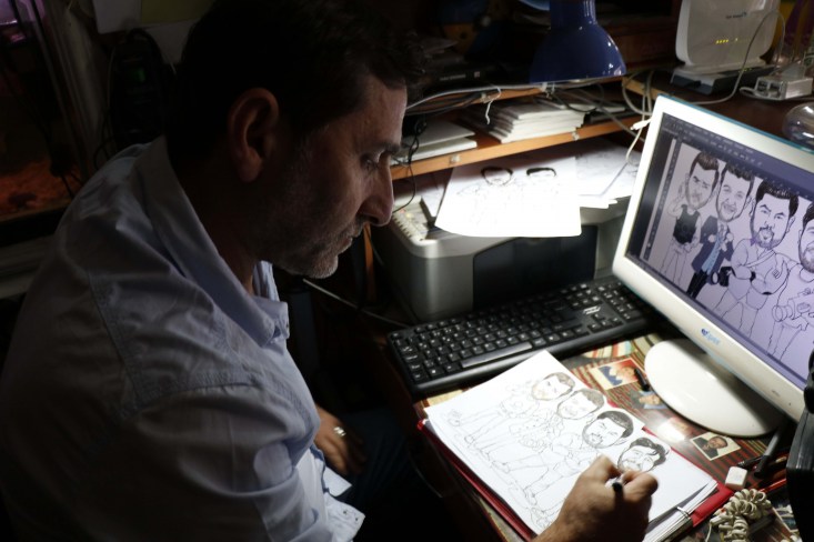 restoran işletmeciliği yapan Şerif Cihan, 11 yıl önce karikatür çizmeye
