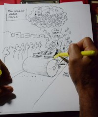 sonra da karikatür çizmeye başladım. Genellikle siyasi şeyler çiziyorum.