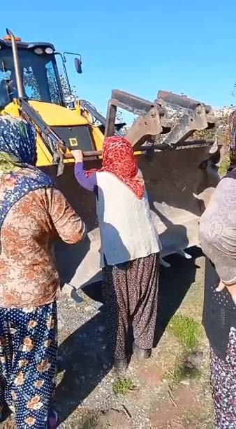 Zonguldak’ın Ereğli ilçesinde baz istasyonu kurulmak istenen mahallede kadınlar kepçenin önüne geçerek engel olmaya çalıştı.