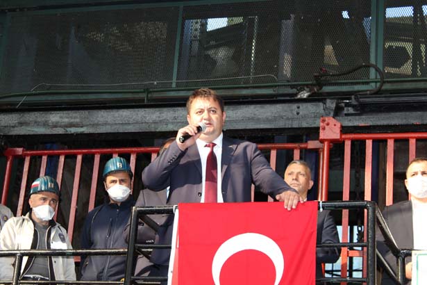 Öncelikle bu salgın döneminde kaybettiğimiz Kemal Soytürk kardeşimize Allah'tan rahmet, yakınlarına ve camiamıza başsağlığı diliyorum. Sendikamızın Genel Merkez Yönetimi burada, şube yöneticilerimiz burada, temsilcilerimiz burada, siz madenci kardeşlerim buradasınız. Genel Maden-İş burada. Birlikte mücadelemiz ve dayanışmamızla bu zorlu dönemin de üstesinden geleceğiz” dedi.
