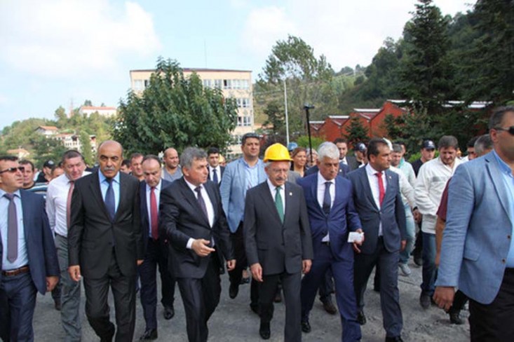 Cumhuriyet Halk Partisi (CHP) Genel Başkanı Kemal Kılıçdaroğlu , Kdz Ereğli'ye bağlı Kandilli beldesinde Türkiye Taşkömürü Kurumu (TTK) Armutçuk müessesesini ziyaret ederek, geçen gün göçükte hayatını kaybeden Erkan Seyhan için başsağlığı diledi. Kılıçdaroğlu, madendeki ölümlerin ülkeyi yönetenlerce 'kader' denilerek geçiştirilmesini eleştirdi.