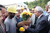Kılıçdaroğlu, Genel Maden İşçileri Sendikası (GMİS) Armutçuk Şube Başkanı Ali Eşitmez ve madenden çıkan madenci tarafından çiçekle karşılandı. Kılıçdaroğlu, kendisine çiçek veren yüzü kömür karası madenciyi öperek çiçekleri aldı. Armutçuk Müessese müdürü Ömer Demir'den kurum ile ilgili bilgiler alan Kılıçdaroğlu, daha sonra madencilere hitaben konuşarak, başsağlığı dileklerini iletti.