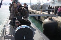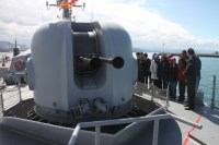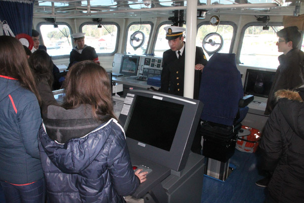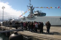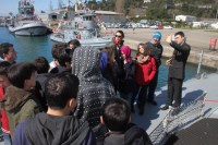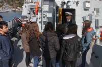 gelen öğrenciler ve vatandaşlar, görevli komutanlar eşliğinde gemileri ve