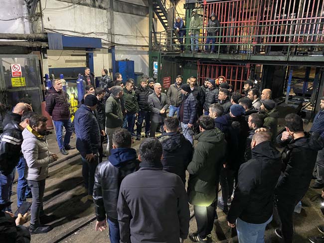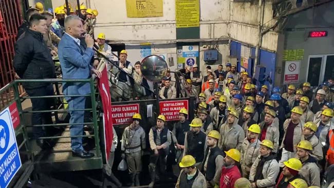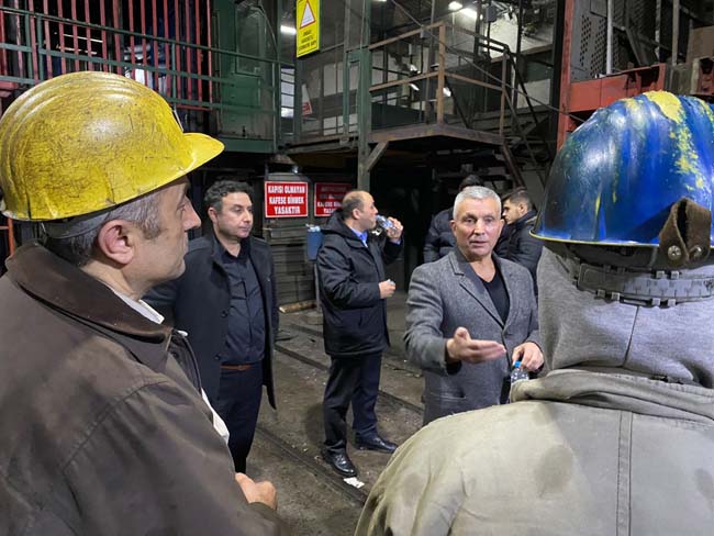 Demir, TTK Üzülmez Müessese Müdürlüğü’nde çalışan gece ve gündüz vardiyası işçileriyle bir araya geldi. Toplu İş Sözleşmesi ve enflasyon farklarıyla ilgili bilgilendirmede bulunan Demir, işçilerin yeni yılını kutladı. Maden işçisinin haklarını koruyarak ve ek kazanımlarla mücadelelerini sürdürdüklerini ifade eden Demir, “Göreve geldiğimiz günden bu yana şartlarımızı olumlu yönde geliştirmek için üstüne her dönem bir şeyler koyarak bugüne kadar geldik. 1 Ocak 2024 yılı itibariyle mevcut ücretlerimizde yeraltında çalışan arkadaşlarımıza yüzde 32, 57 enflasyon farkı zammı verildi. Yeraltında çalışan arkadaşlarımız yine iki asgari ücret farkından yararlandı. Sosyal haklarımıza da yine bu şekilde zam yapıldı.” ifadelerini kullandı.